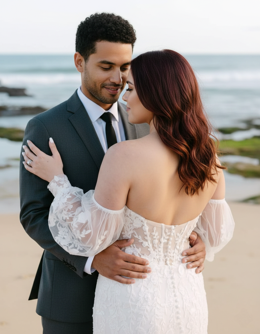 They can be worn on the arms for a dramatic, editorial look during the ceremony and removed for the reception to reveal a sleek, strapless silhouette.